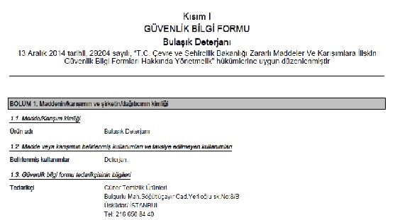 MSDS (Malzeme Güvenlik Bilgi Formu)